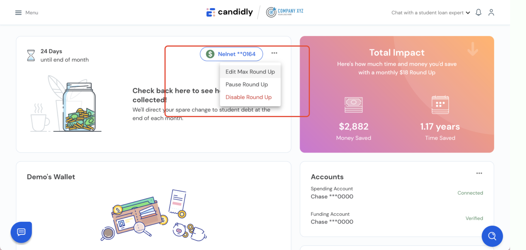 - If you have already connect your student loan account(s), your Round Up payments will be sent to your primary loan account. If you have not yet connected at least one student loan account, you will be prompted to do so in order to finish activating Round Up.