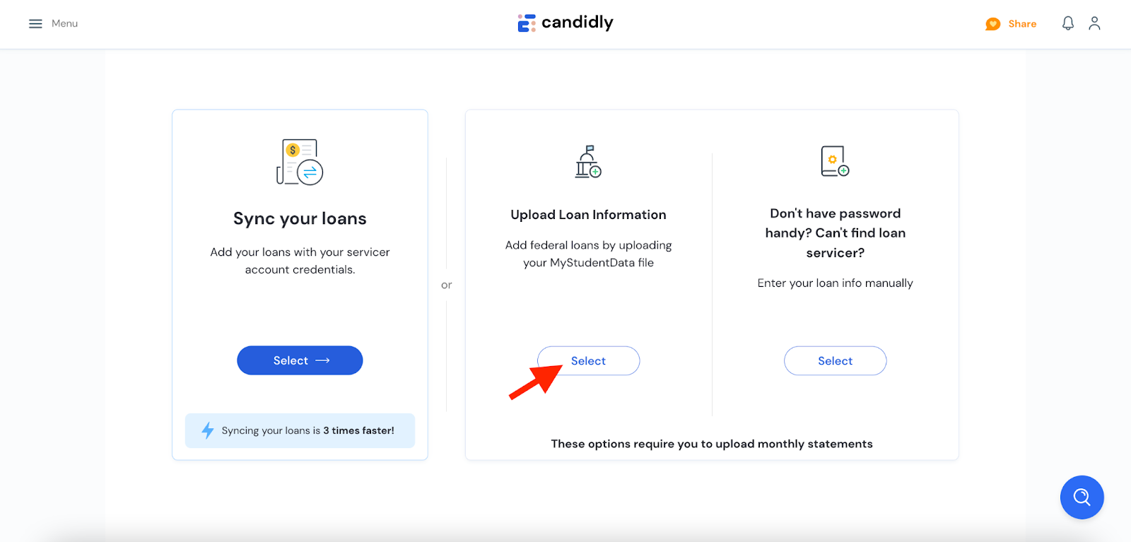 - Follow the prompts to upload a copy of your loan statement or loan verification document (downloaded from your loan servicer)